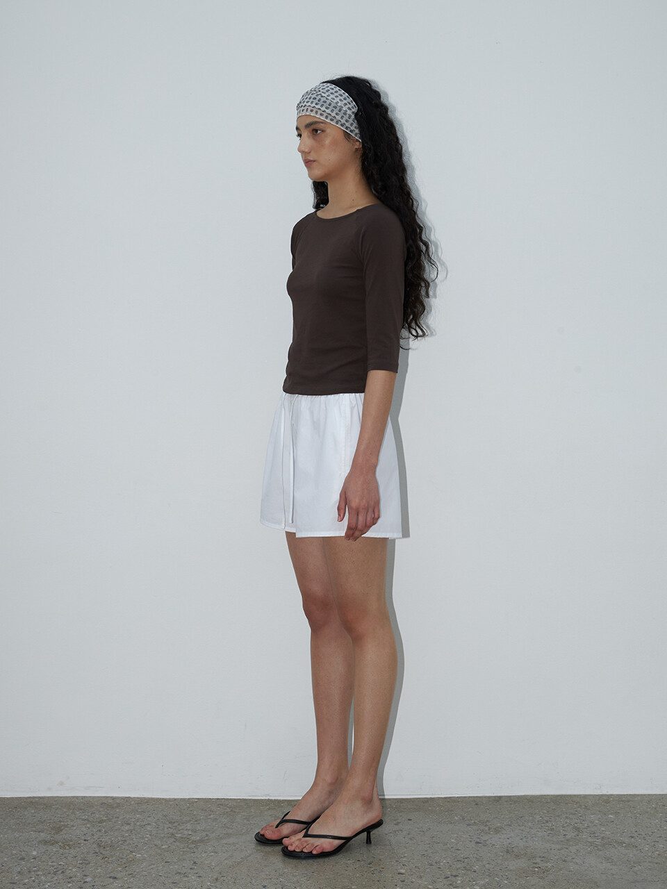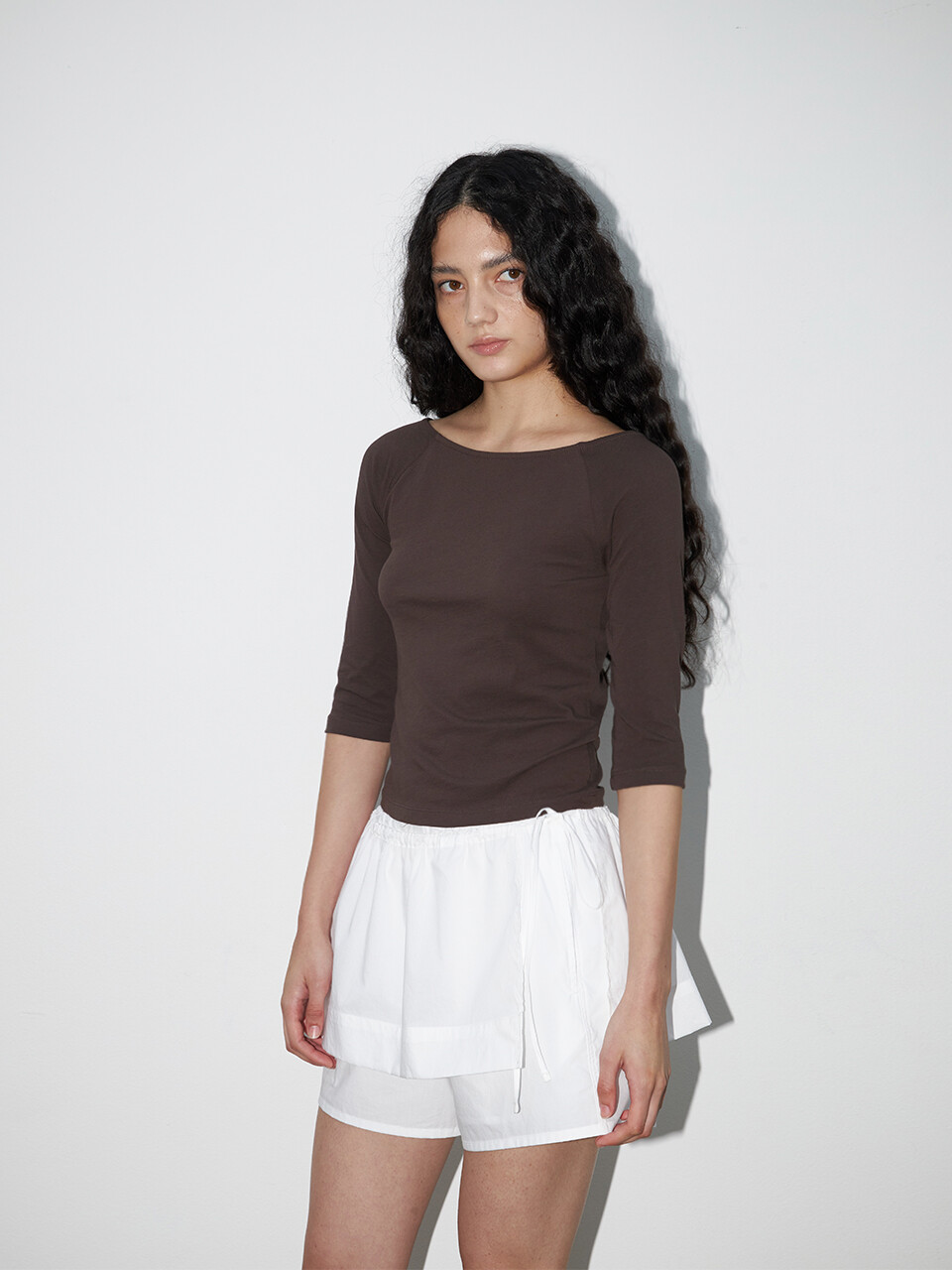 더 얇은 같은 계열의 코튼 소재로 제작된 레이어드 스커트와 함께 감각적인 셋업 스타일로 연출할 수 있습니다.