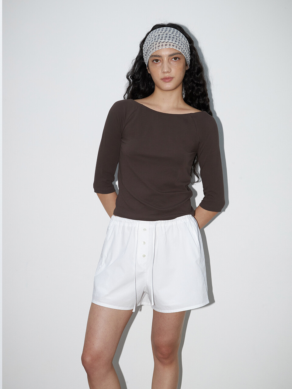 허리에 밴딩이 내장되어 편안하게 착용되며, 여유 있는 품과 짧은 기장으로 경쾌한 실루엣을 연출합니다.