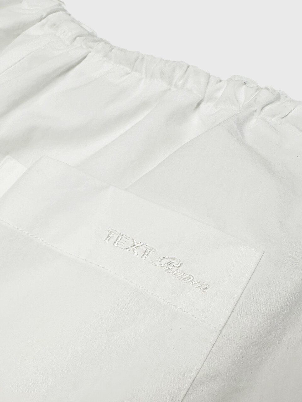 전면 단작에는 텍스트룸 로고가 각인된 자개 단추를 사용했고, 뒷면 포켓에는 브랜드만의 섬세함을 담은 자수 디테일을 더해 완성도를 높였습니다.