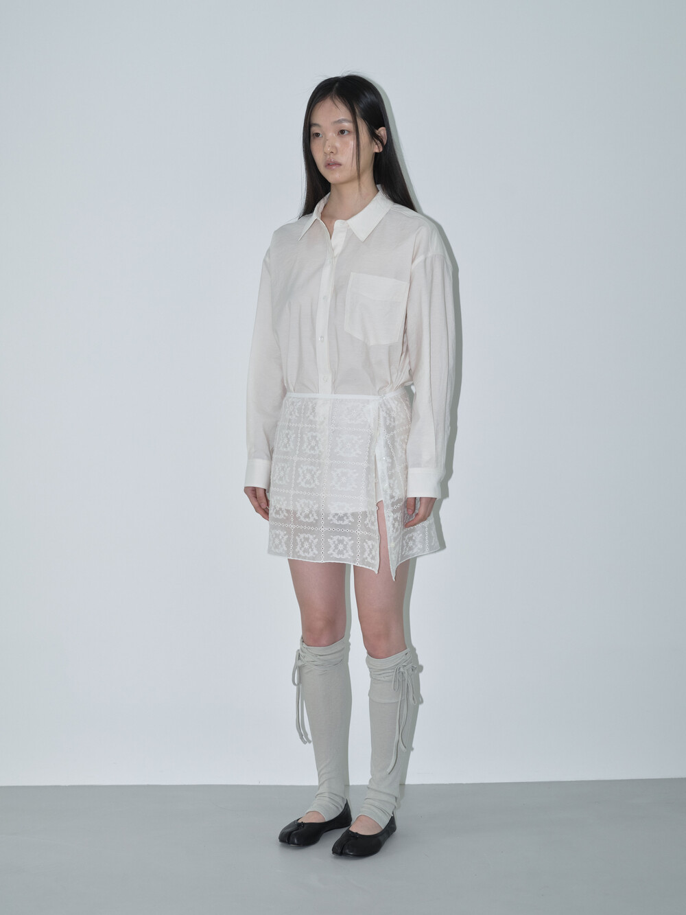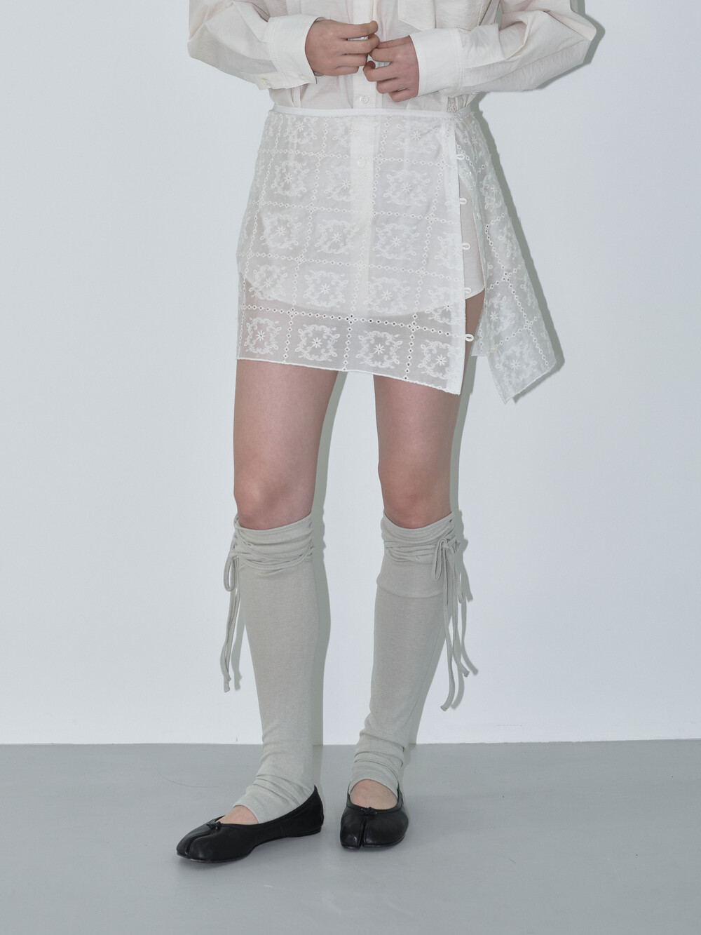 라이트 카키와 그레이의 두 가지 컬러는 오묘한 톤으로 고급스러운 분위기를 더하며, 어떤 룩에도 자연스럽게 어우러집니다. 무릎 부분에 얇은 끈 디테일을 더해 원하는 높이에서 묶어서 연출할 수 있어 다양한 스타일링이 가능합니다.