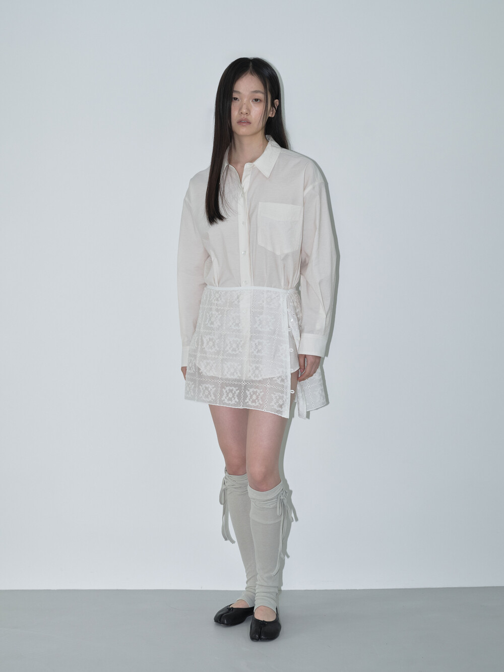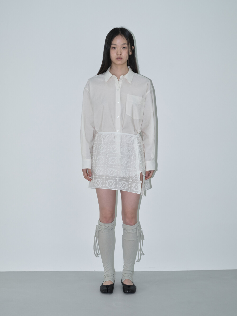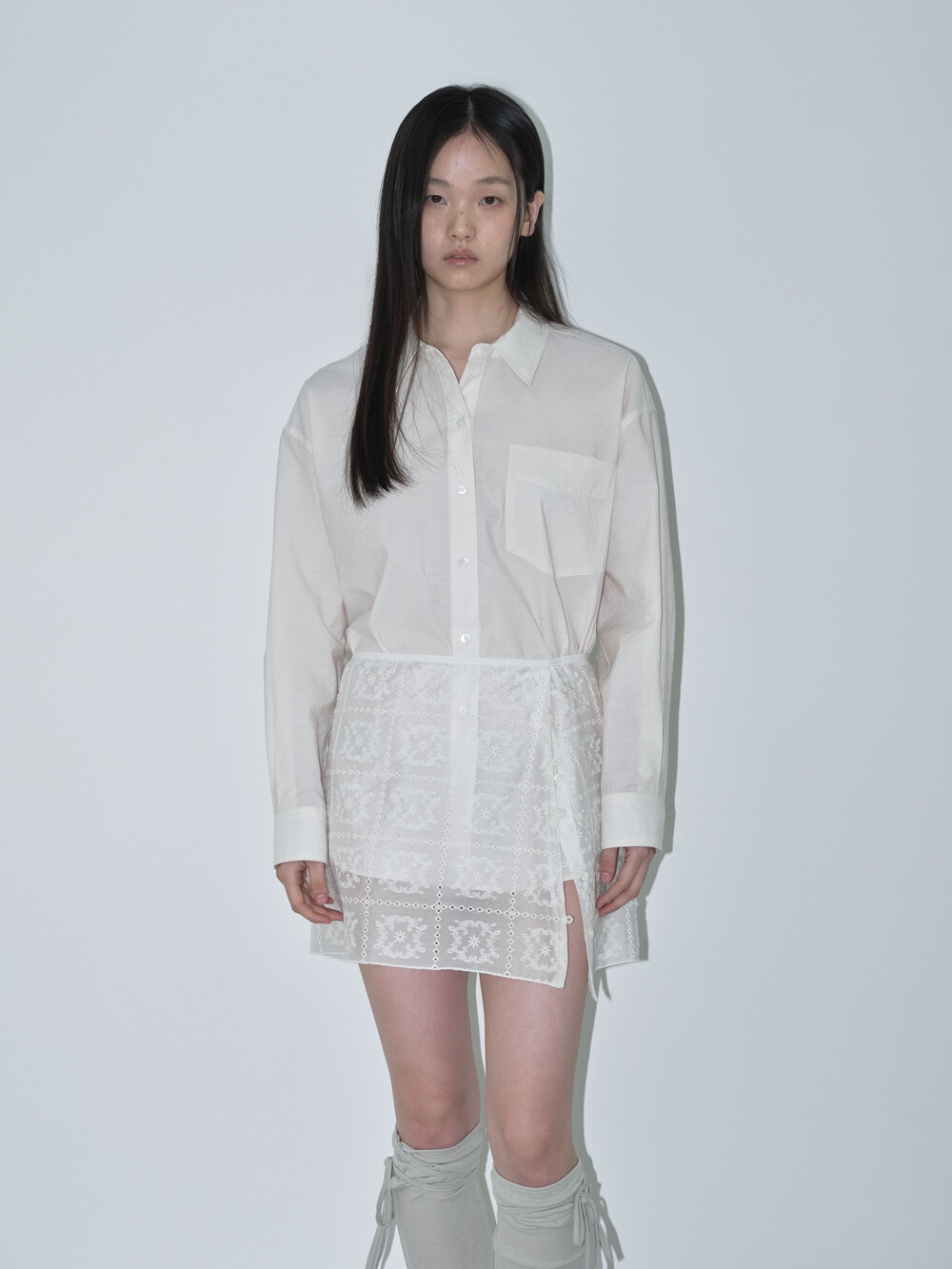 측면의 버튼 디테일을 활용해 사이즈 조절이 가능하며, 안쪽 버튼을 활용하면 언밸런스한 핏으로도 연출할 수 있어 한층 더 다양한 스타일링이 가능합니다. 또한, 랩 스타일 디자인으로 다양한 하의와 레이어드하거나 단독으로 착용해 감각적인 룩을 완성할 수 있습니다.