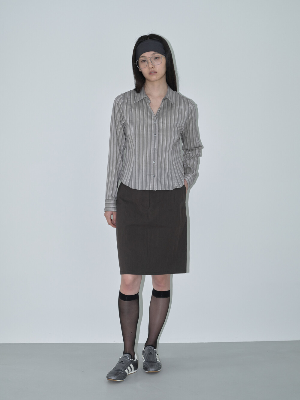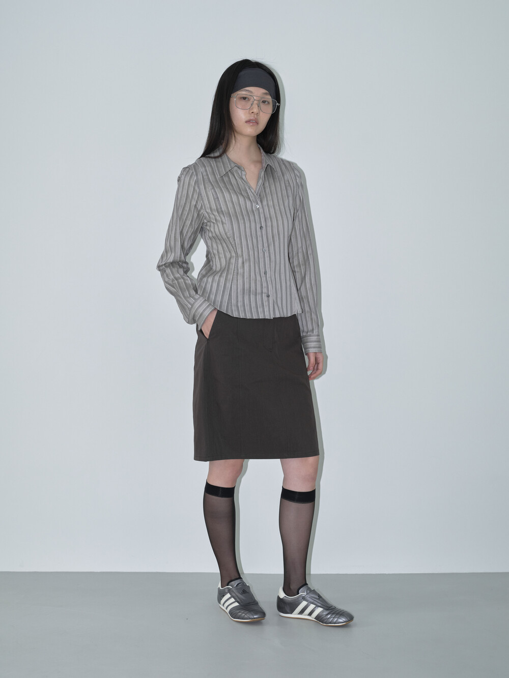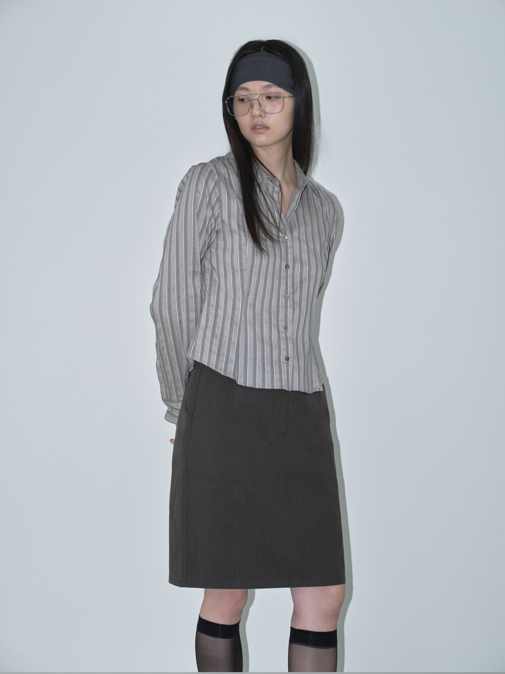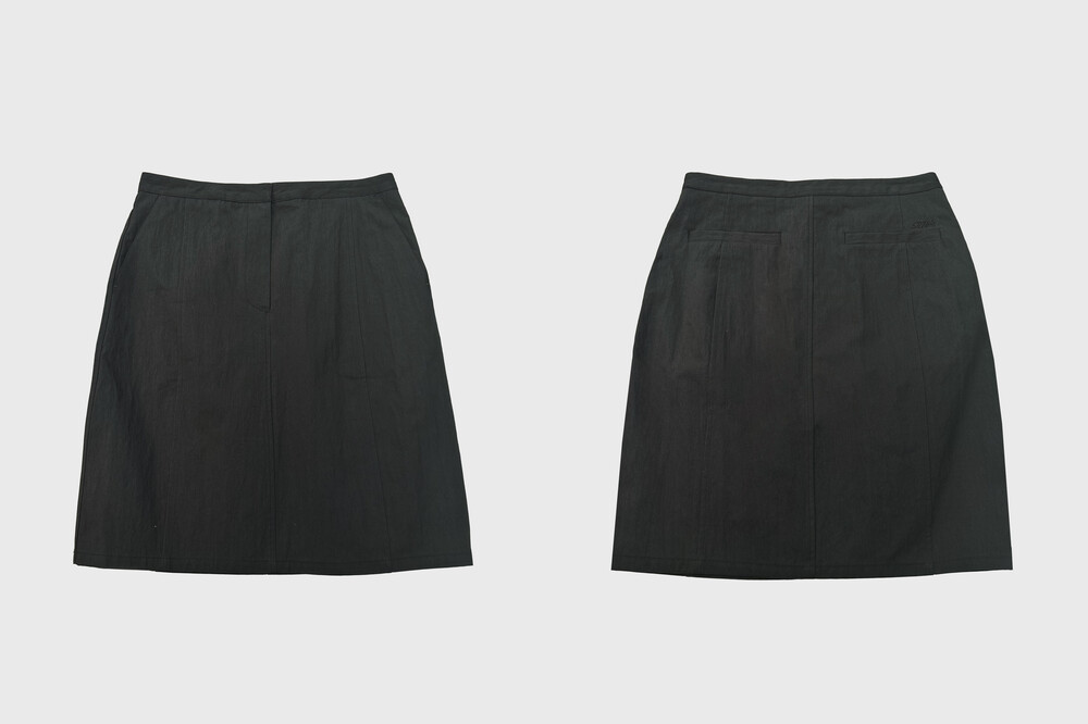 간절기에 시즌리스하게 착용할 수 있는 미디스커트입니다. 고밀도 원사로 짜여진 면-나일론 혼합 소재를 사용해 바스락거리는 질감과 자연스러운 링클감이 특징입니다.
