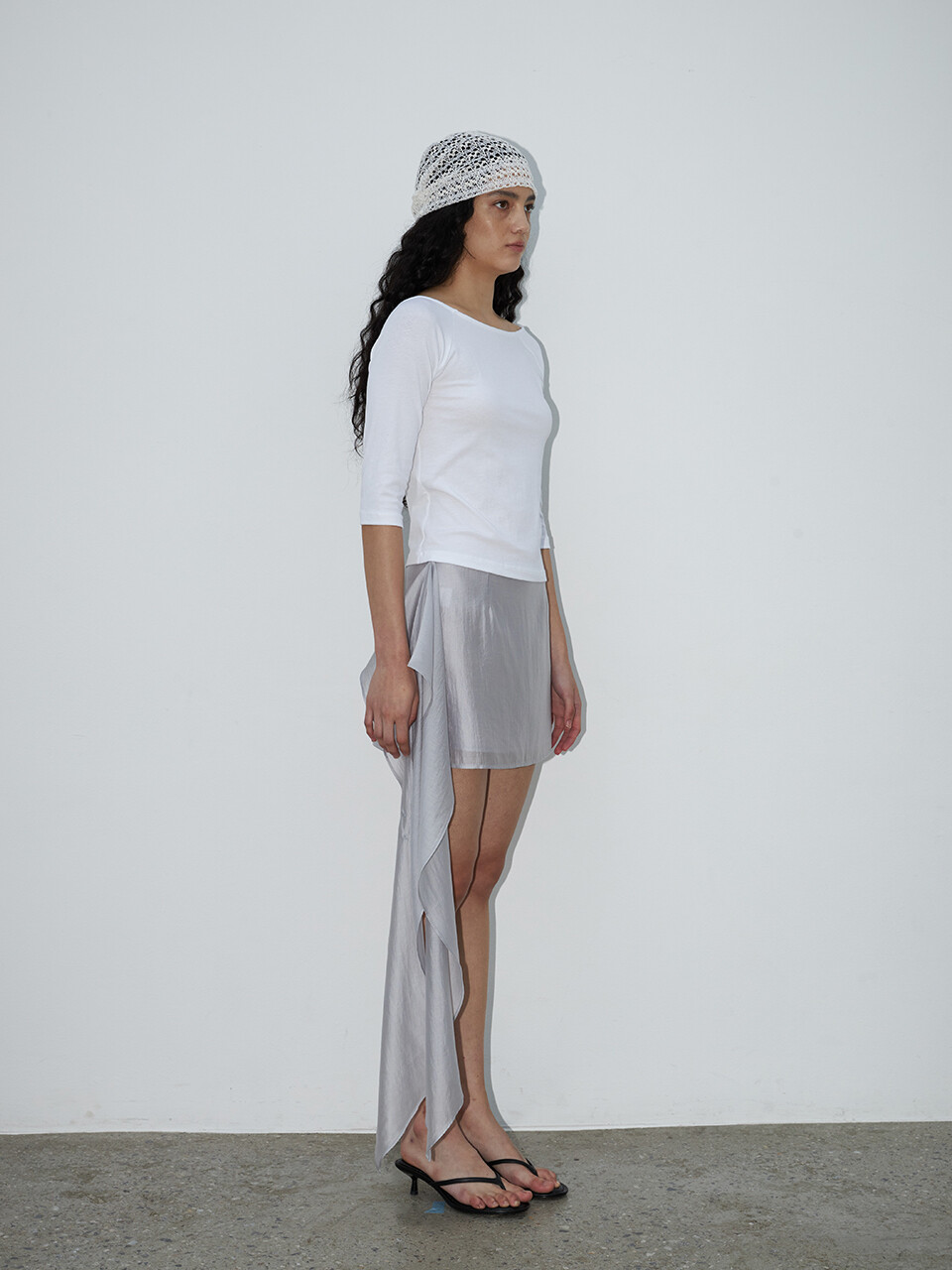 부드럽고 유연한 텍스처로 피부에 닿는 촉감이 뛰어나며, 자연스러운 드레이프가 실루엣을 우아하게 완성합니다.