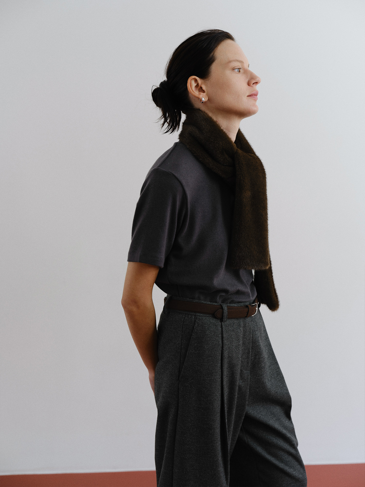 클래식하고 따뜻한 무드의 울 반팔 티셔츠입니다.