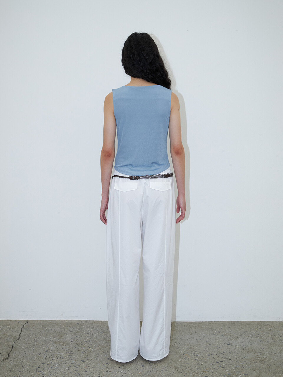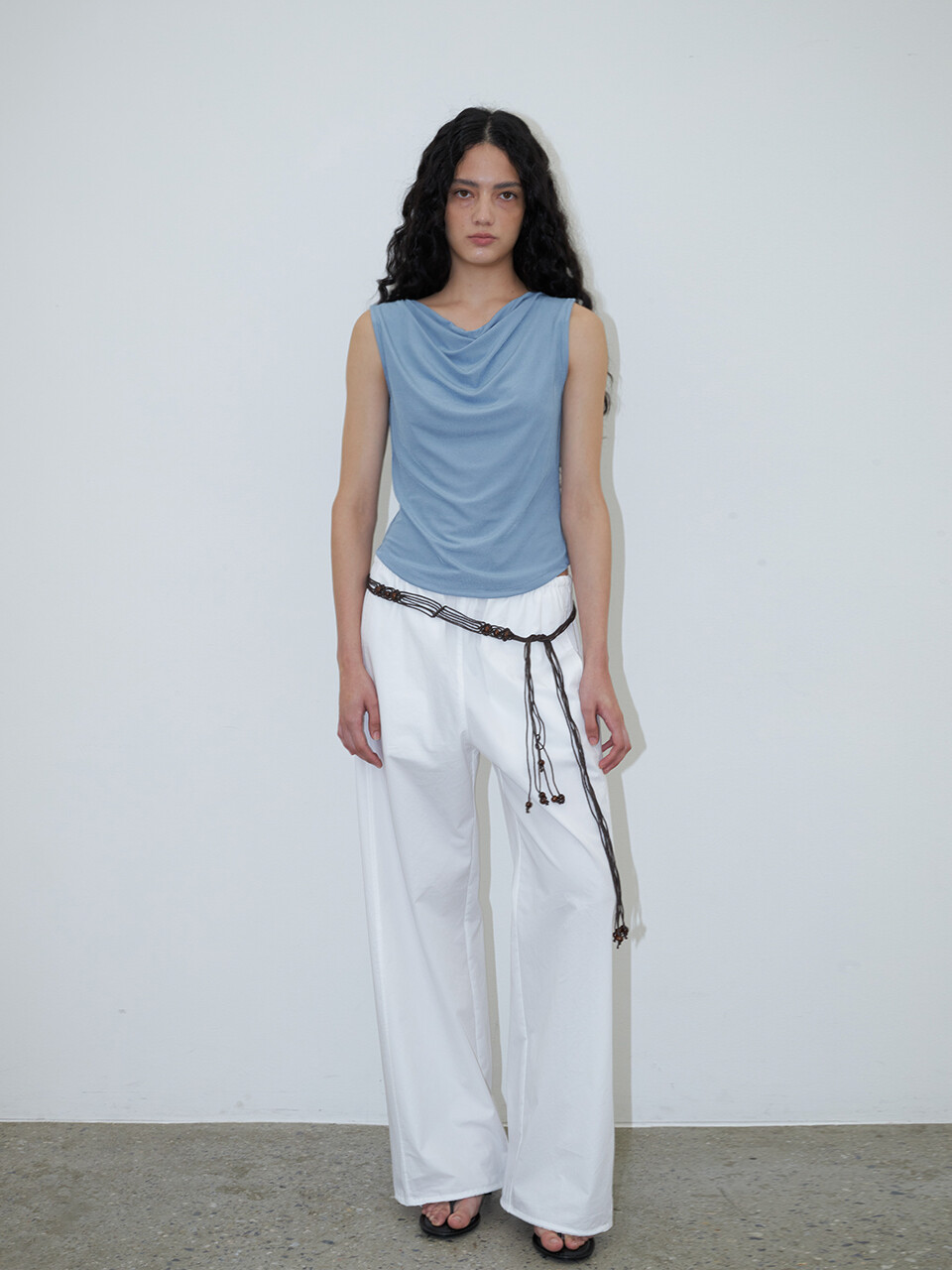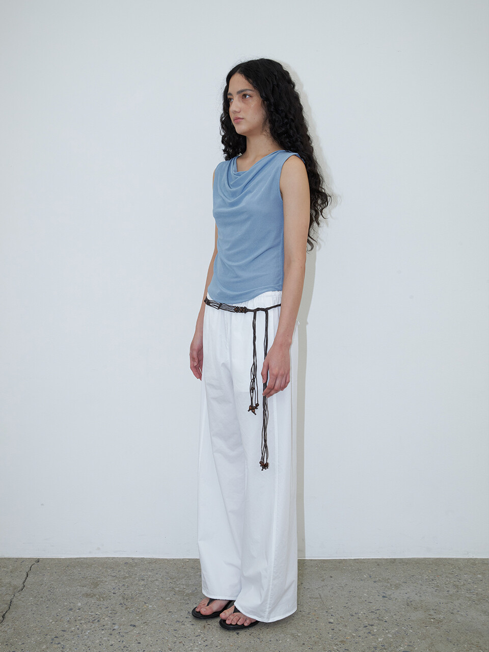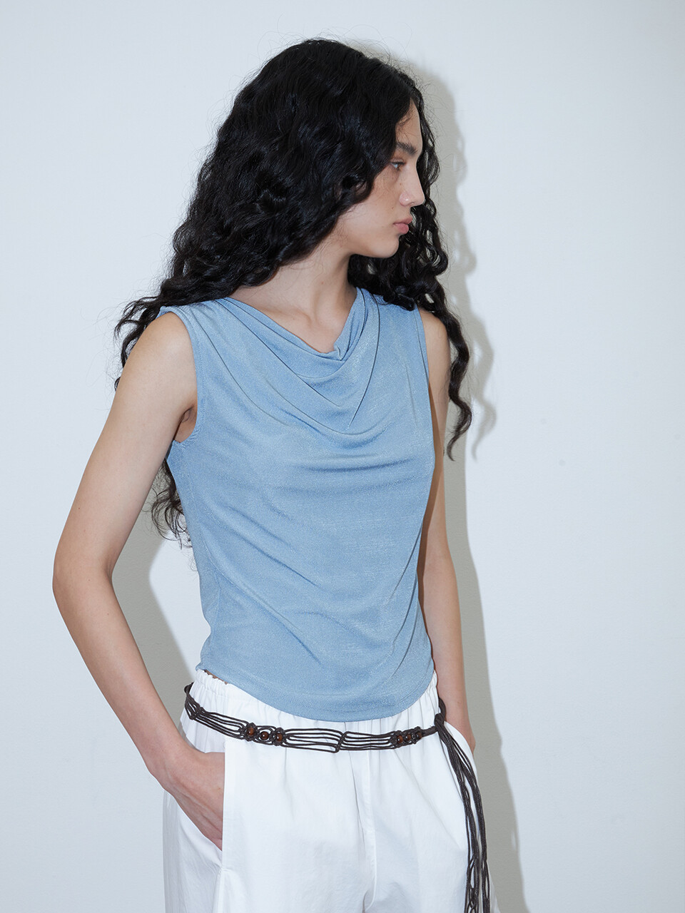 묘한 컬러감이 매력적인 드레이프 슬리브리스 탑입니다.